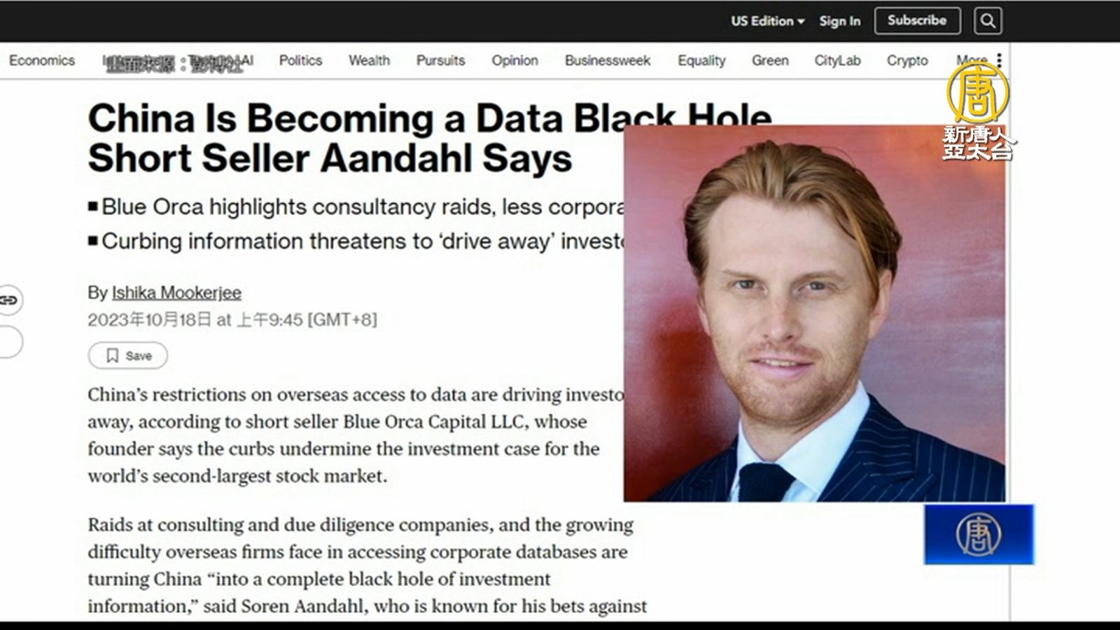 今年5月以來,中共實施一系列措施,限制海外機構獲取中國企業數據,包括突襲多家在中國的美國諮詢公司,以及限制海外公司訪問資料庫。彭博社報導,國際知名做空機構Blue Orca創辦人安達爾表示,這些措施正在把中國變成一個「完全的投資資訊黑洞」,他表示,「這只會導致投資者遠離中國」,並加劇外資流出中國。 //asset2.ntdtv.com.tw/public/uploads/assets/2023/10/18/2023-10-18-652fc60adf9fc.mp4 中國|反間諜法|外資2023-10-18 19:44:17