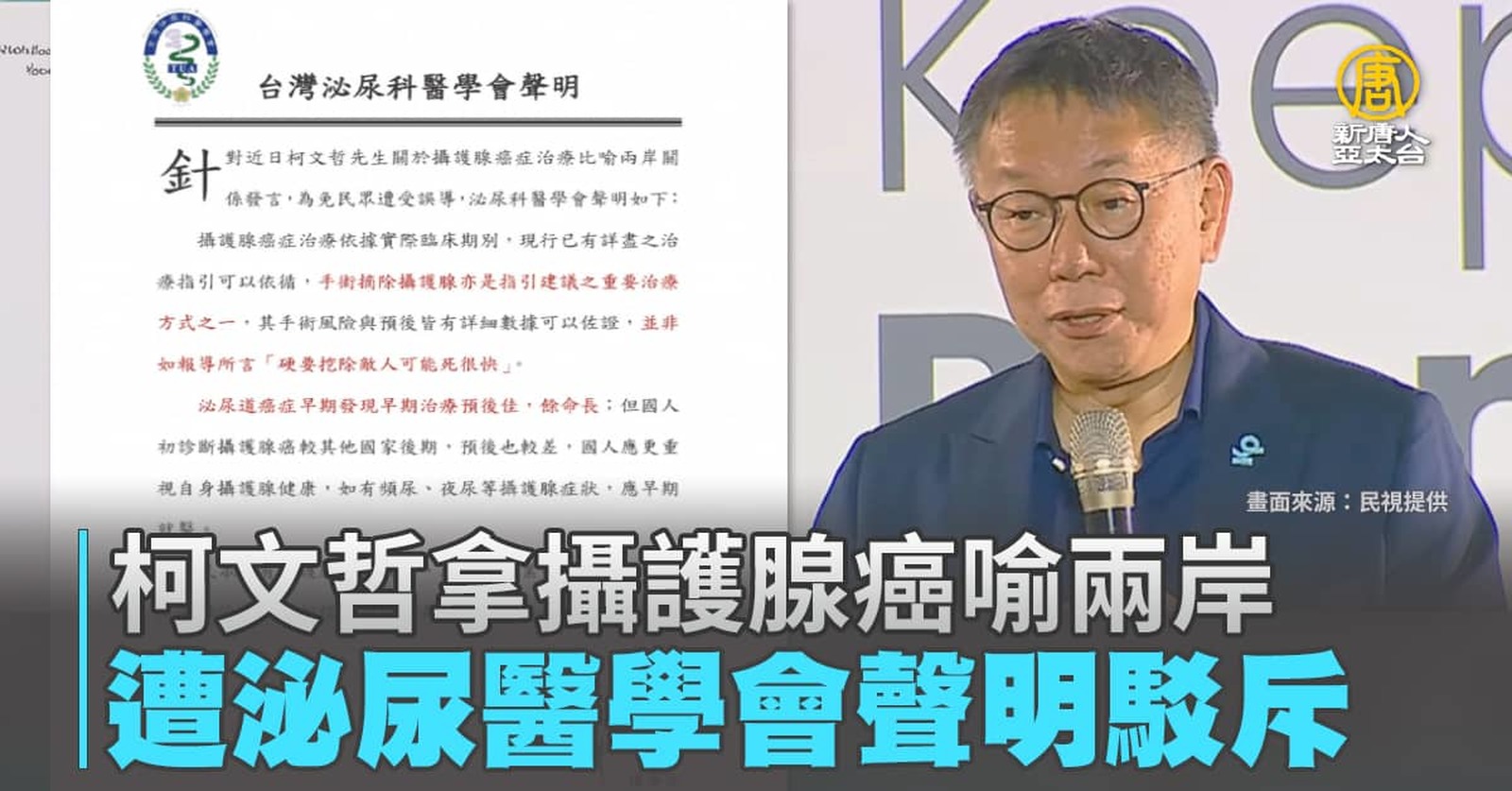 柯文哲拿攝護腺癌喻兩岸 遭泌尿醫學會聲明駁斥