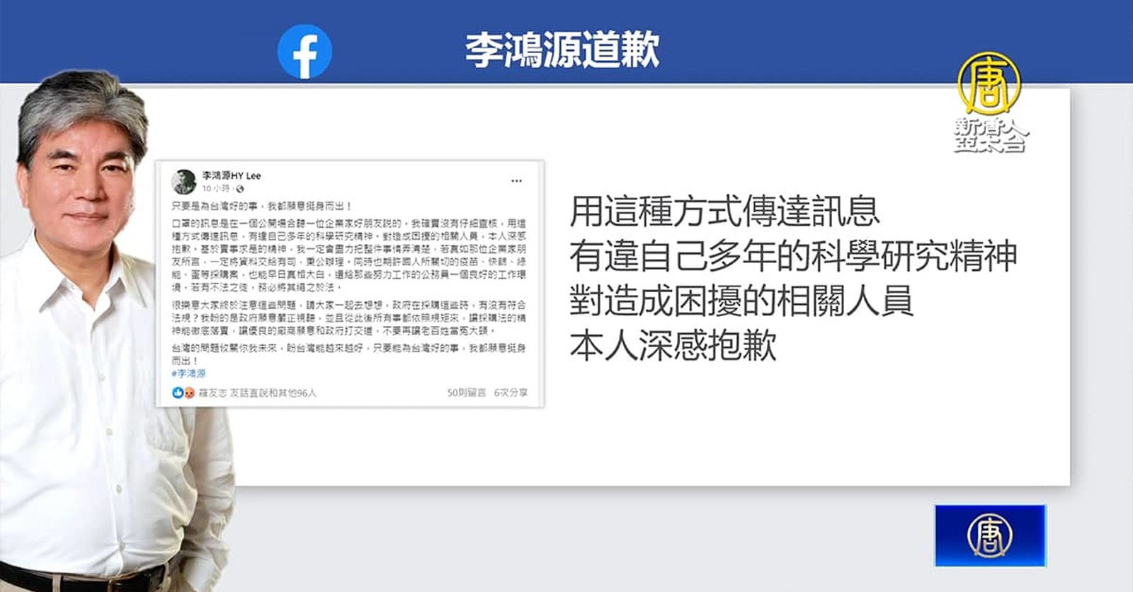 李鴻源稱口罩國家隊賺回扣道歉了 經長盼還公道