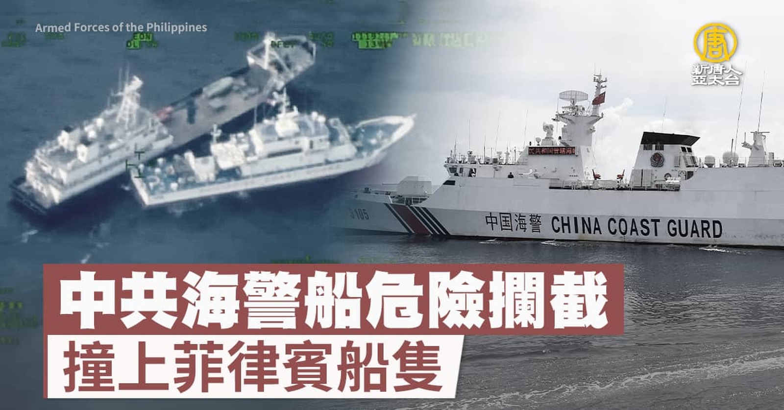 帶您看到,中共又在南海引發區域緊張!週日(22日),中菲船艦在南海仁愛礁鄰近海域碰撞,菲律賓官方首次通報,船隻遭中共船艦撞擊,並強烈譴責中共船隻的危險阻擋行徑,已召見中共大使抗議。包括美國國務院、加拿大、日本及歐盟,都發言力挺菲律賓,譴責中共危險且違法的行徑。 //asset2.ntdtv.com.tw/public/uploads/assets/2023/10/23/2023-10-23-653659ad6d45c.mp4 菲律賓|南海|中共|海警船|補給船2023-10-23 20:04:50