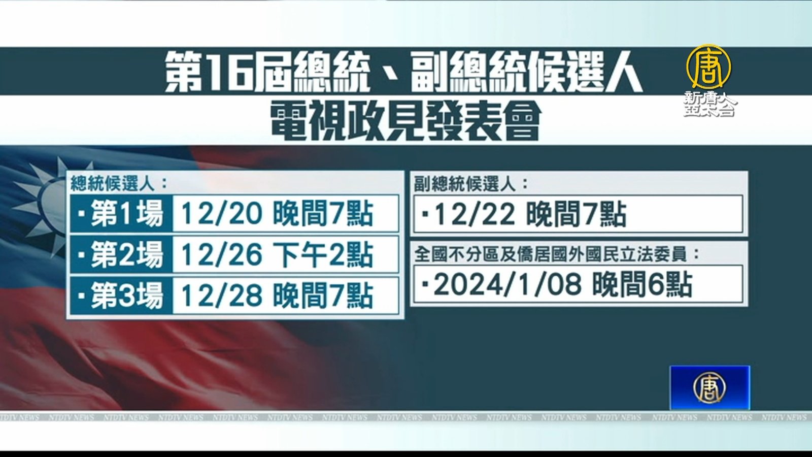 總統候選人電視政見發表會 12月20日登場共3場