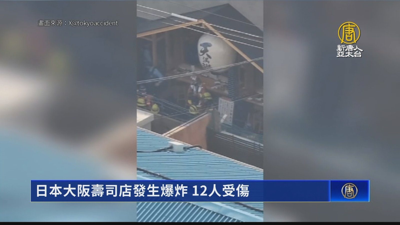 日本大阪市北區JR天滿車站附近一家壽司店,今天下午1點多傳出爆炸,造成4名店員、8名顧客受傷。據日媒《NHK》報導,警察表示,有消息指出店內使用的卡式瓦斯爐,在起火後隨即引發爆炸,12名傷患傷勢都不算嚴重,目前正在進一步調查案件相關細節。 //asset2.ntdtv.com.tw/public/uploads/assets/2023/10/28/2023-10-28-653cf470ed507.mp4 大阪|壽司店|爆炸|卡式瓦斯爐|日本2023-10-28 19:42:31