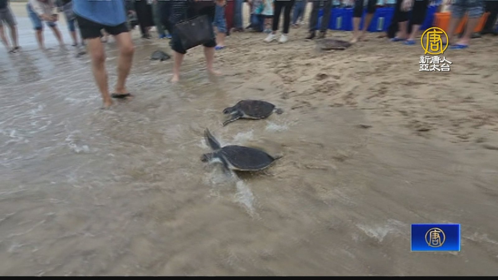 澎湖野放保育類海龜 小朋友歡送小龜返大海