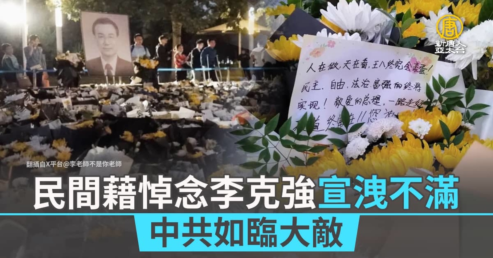 關心中國消息,中共前總理李克強27日因心臟病在上海猝死,享年68歲,中共官方今天(31日)公告稱,李克強遺體將於11月2日在北京進行火化儀式,並宣布多地將降半旗,但官媒並沒有提到告別式與追悼會,李克強遺體已在27日由專機從上海送至北京,自李克強逝世消息傳出後,許多中國民眾藉悼念李克強,表達對中共極權不滿,讓中共當局如臨大敵。 //asset2.ntdtv.com.tw/public/uploads/assets/2023/10/31/2023-10-31-6540e6f5e2644.mp4 李克強猝死|李克強2023-10-31 19:32:31