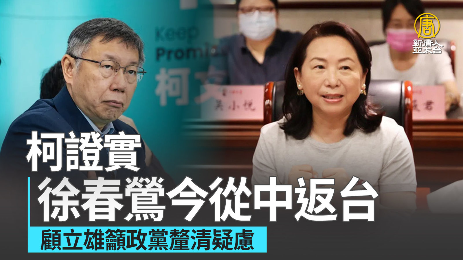 柯證實徐春鶯今從中返台 顧立雄籲政黨釐清疑慮