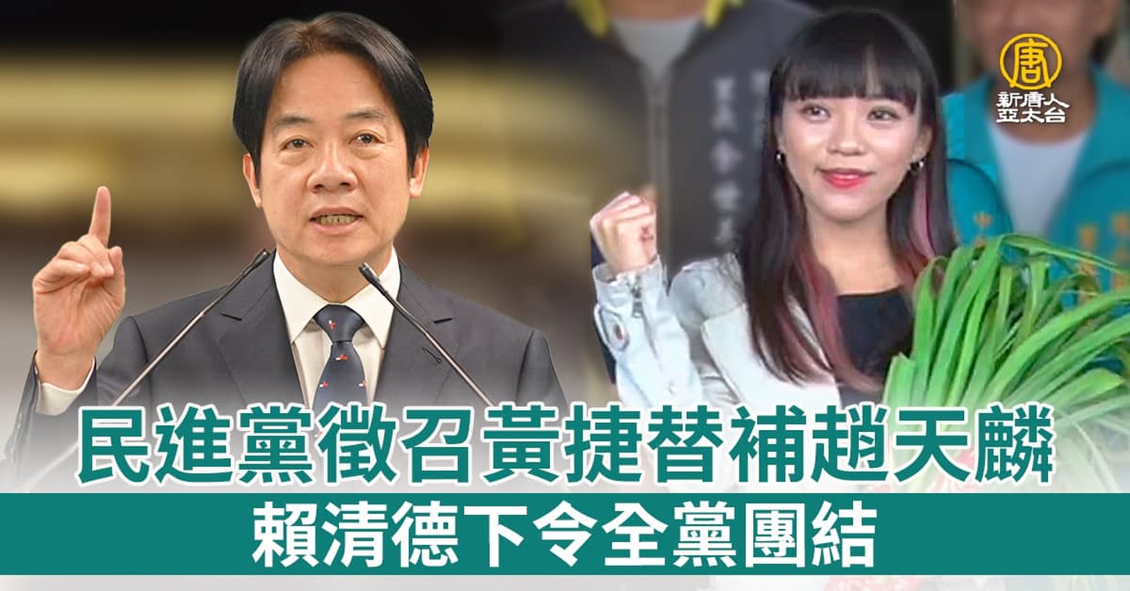 民進黨徵召黃捷替補趙天麟 賴清德下令全黨團結