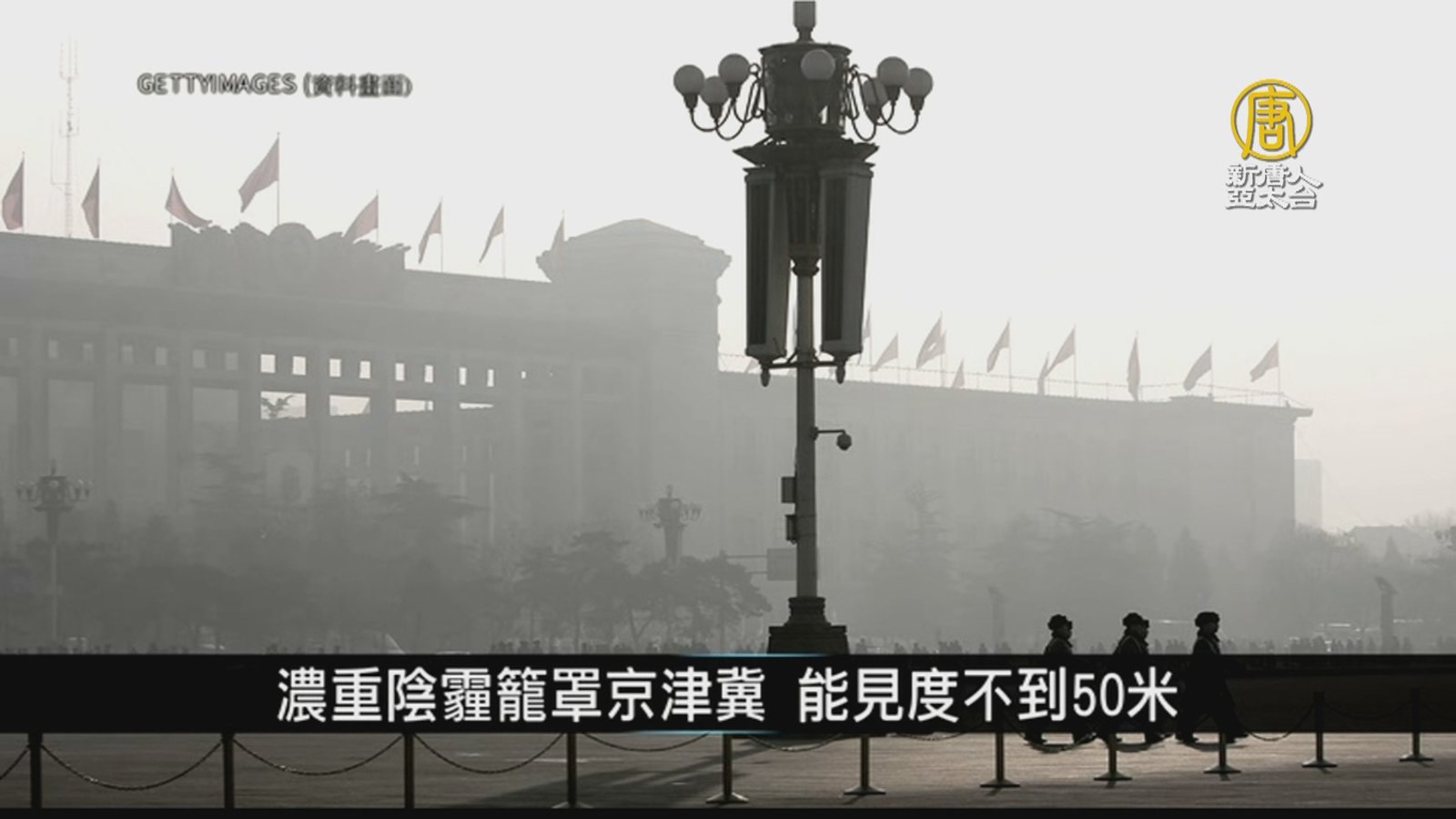 濃重陰霾籠罩京津冀 能見度不到50米|中國一分鐘