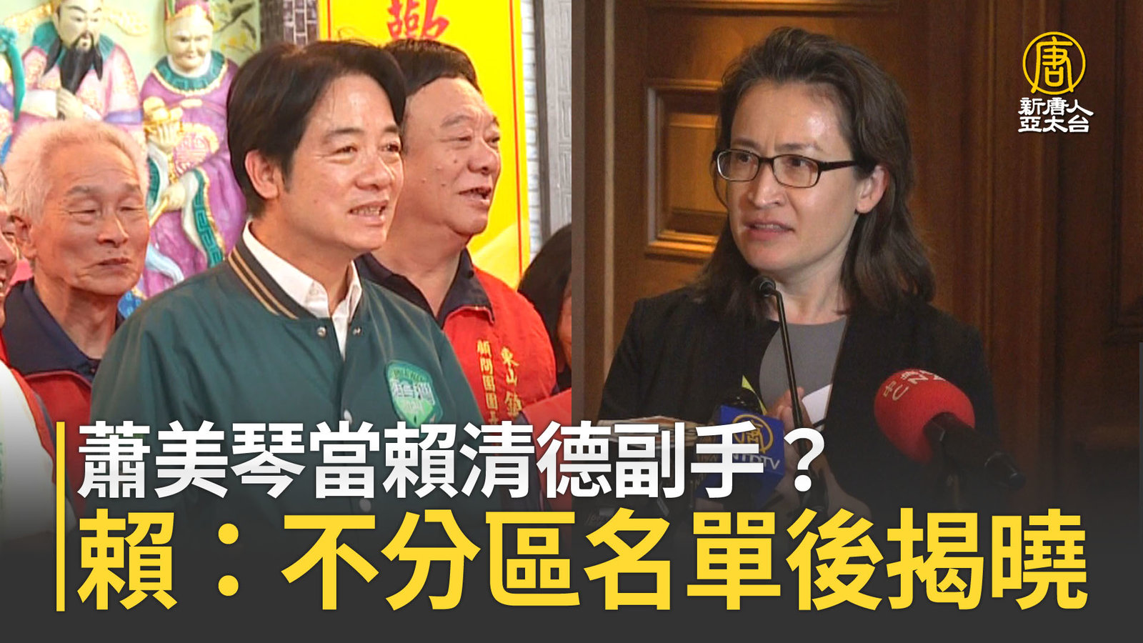 總統大選倒數,民進黨總統參選人賴清德先前透露,駐美代表蕭美琴是他的副手優先人選。外界也關注「賴蕭配」什麼時候成形?現在就傳出蕭美琴將在11/17舊金山APEC結束後返台,正好可以趕上11/20-11/24號的總統大選登記。 //asset2.ntdtv.com.tw/public/uploads/assets/2023/11/03/2023-11-03-6544eb9c9a519.mp4 2024總統大選|賴清德|蕭美琴|賴蕭配|駐美代表2023-11-03 20:41:49