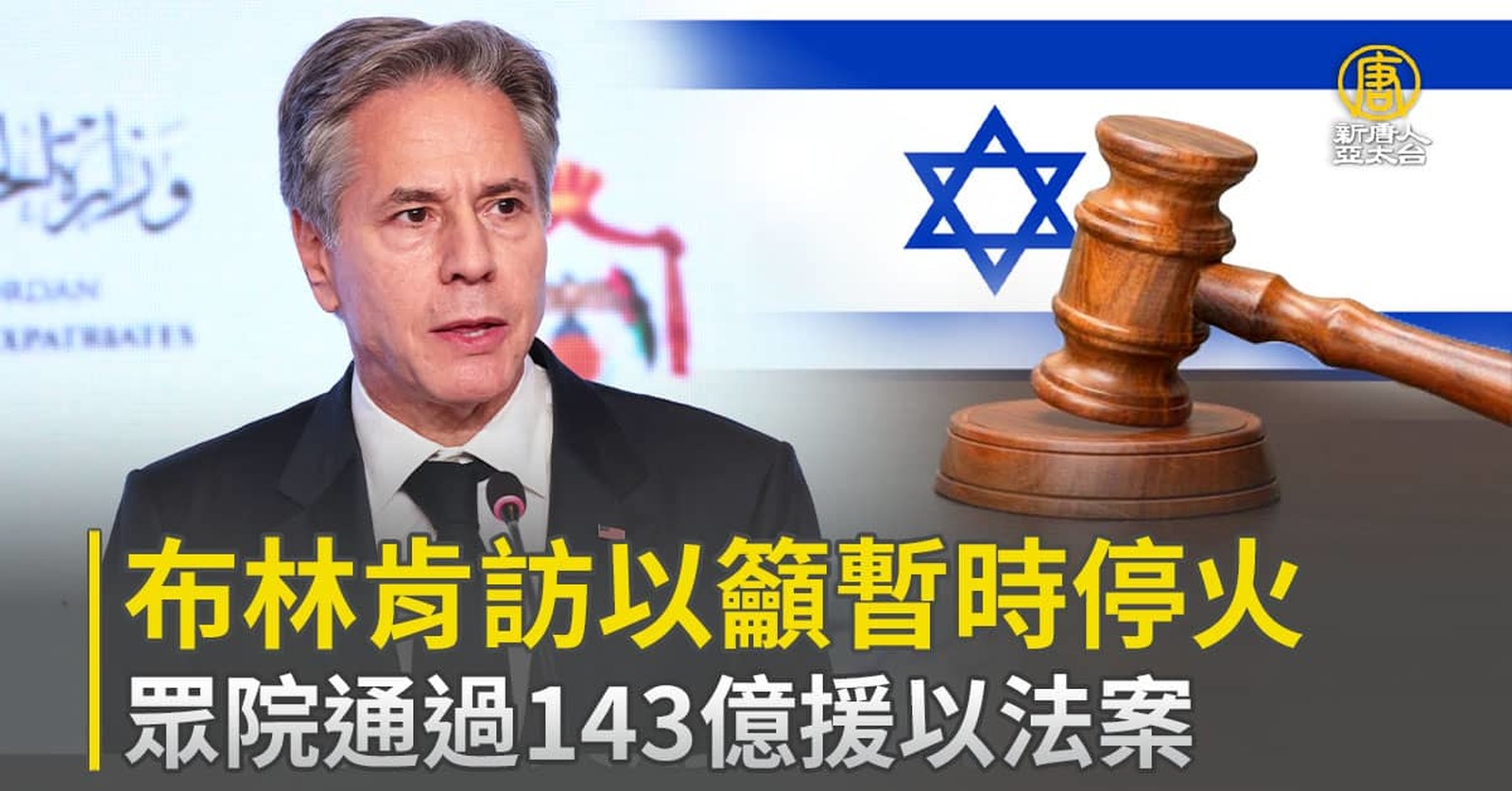 布林肯訪以籲暫時停火 眾院通過143億援以法案