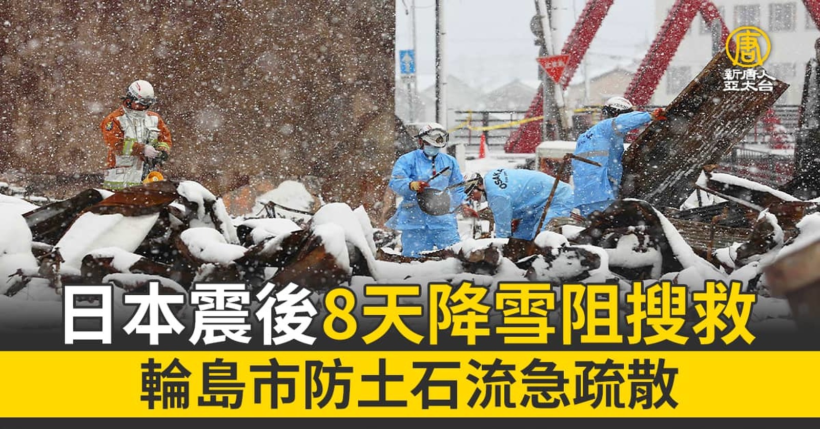 日本震後8天降雪阻搜救 輪島市防土石流急疏散