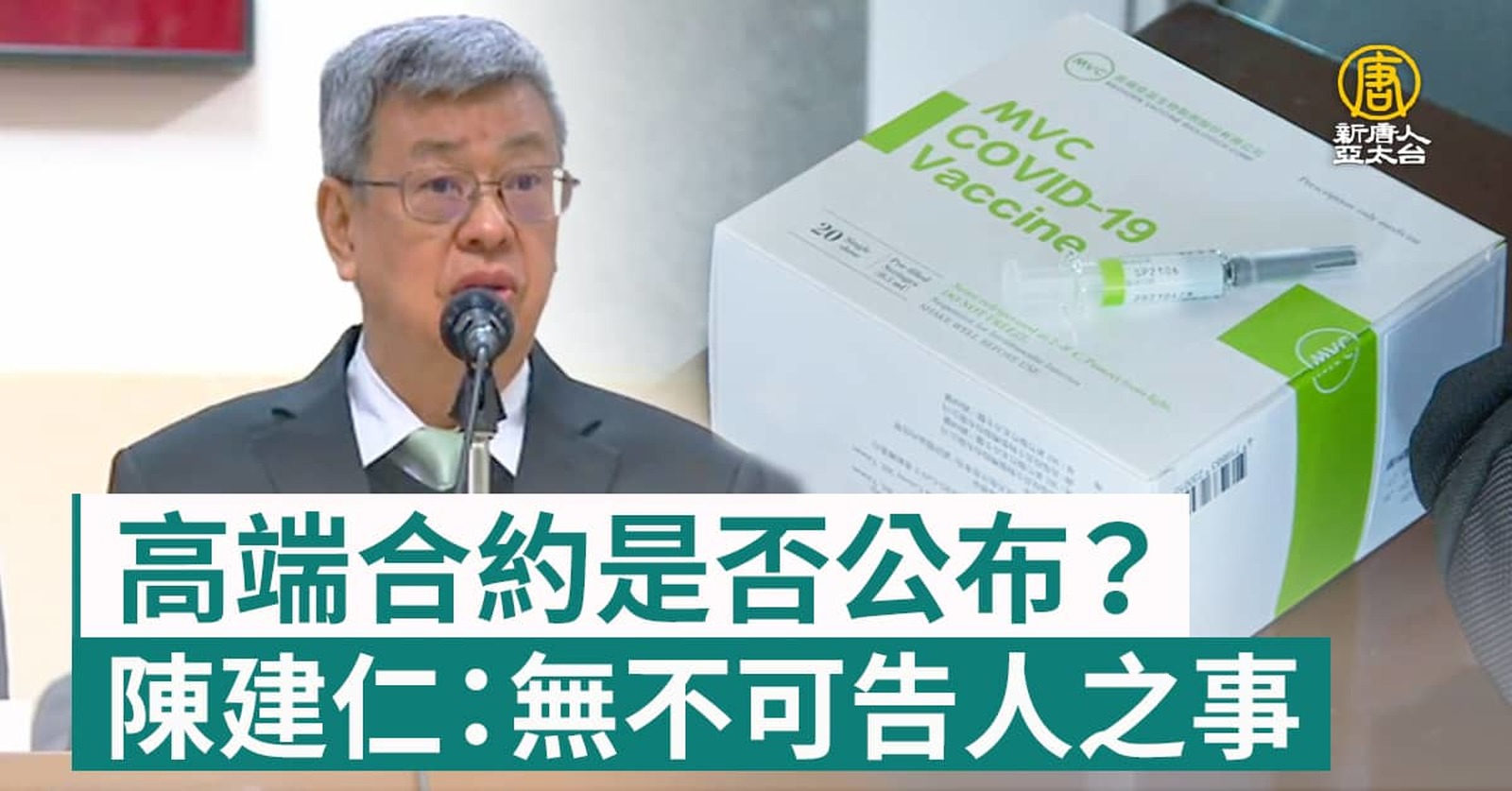 立法院今天(9日)在大選前召開臨時會,邀請行政院長陳建仁專案報告國產的高端疫苗,陳建仁說,政府與高端的採購合約,是依照相關法規,之中沒有不可告人的事情。高端也聲明,會召開董事會討論,是否提前公開。 //asset1.ntdtv.com.tw/public/uploads/assets/2024/01/09/2024-01-09-659d2c8680bb4.mp4 2024總統大選|陳建仁|高端|薛瑞元2024-01-09 20:23:30