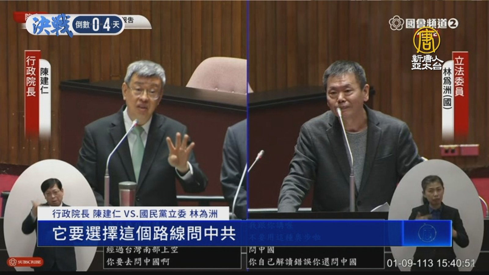 中共下午發射的衛星,飛越台灣南部上空,國防部連續發出國家級警報,但警報英文誤用「Missile」飛彈,引發爭議。對此,行政院長陳建仁備詢時承認用詞錯誤,會檢討。而對於在野黨質疑刻意誤導民眾,陳建仁則反問,中共發射衛星偏偏要經過台灣上空,為何不譴責中共。 //asset1.ntdtv.com.tw/public/uploads/assets/2024/01/09/2024-01-09-659d292947531.mp4 2024總統大選|陳建仁|中共衛星|介選2024-01-09 19:17:18