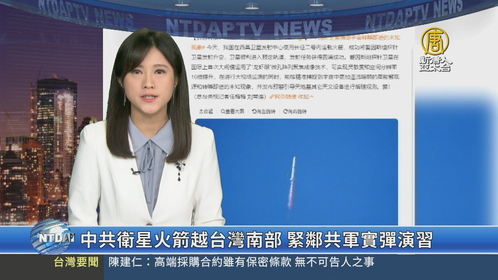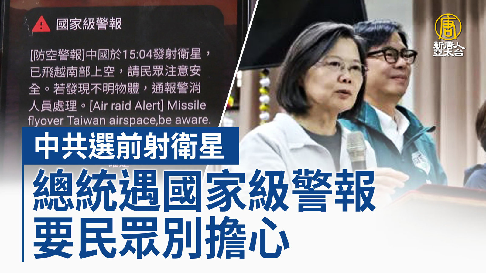 中共選前射衛星 總統遇國家級警報要民眾別擔心