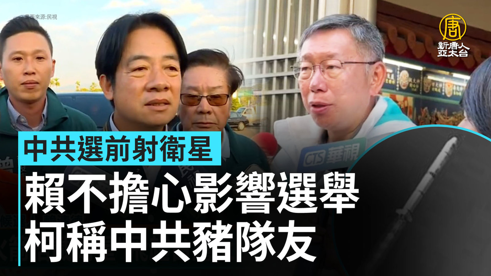 中共選前射衛星 賴不擔心影響選舉 柯稱中共豬隊友