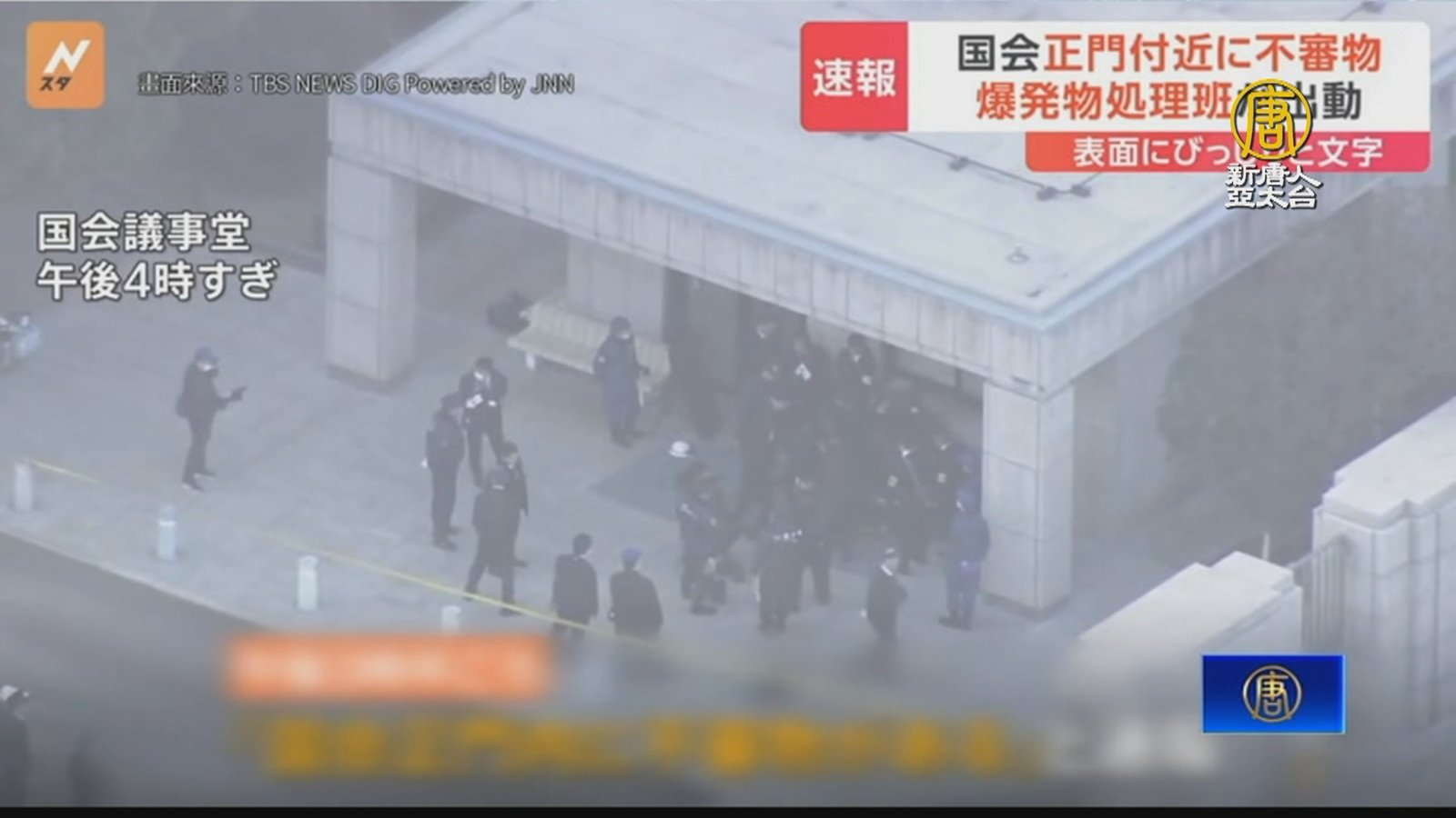 鏡頭轉到日本,今天(9日)下午傳出在東京的國會議事堂正門口,發現疑似是爆裂物的物品,警視廳隨即派出爆裂物處理班進行調查,不過經查證,可疑物品是信件包裹,上面寫滿了字,並放了信跟照片,並沒有發現危險物品。 //asset2.ntdtv.com.tw/public/uploads/assets/2024/01/09/2024-01-09-659d347e91df5.mp4 日本警視廳|國會議事堂|東京2024-01-09 20:03:08