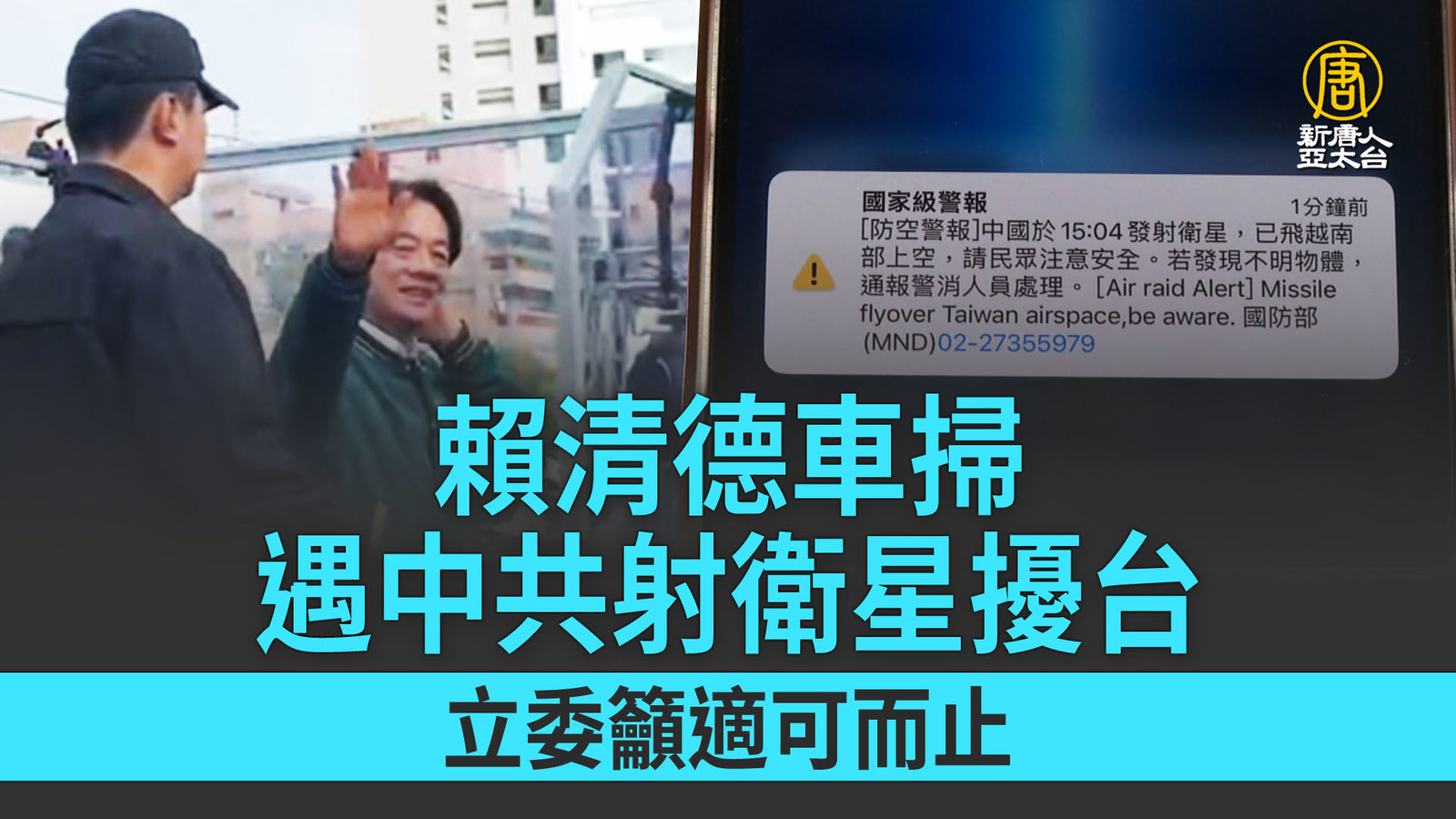 賴清德車掃遇中共射衛星擾台 立委籲適可而止