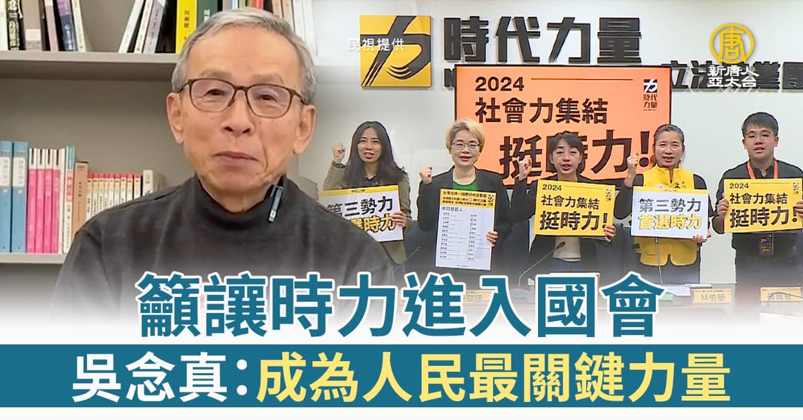 選舉最後關頭,台大歷史系教授陳翠蓮、律師詹順貴、楊貴智,以及醫師姜冠宇等,為了支持時代力量成為第三勢力,共同發起連署,就連導演吳念真也拍攝影片,呼籲民眾,讓時代力量進入國會,成為人民最關鍵的力量。 //asset3.ntdtv.com.tw/public/uploads/assets/2024/01/09/2024-01-09-659d383707f44.mp4 時代力量|2024總統大選2024-01-09 20:08:03