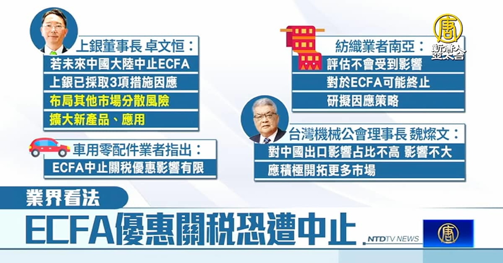 中共擬再中止ECFA關稅減讓 紡織、機械:影響小