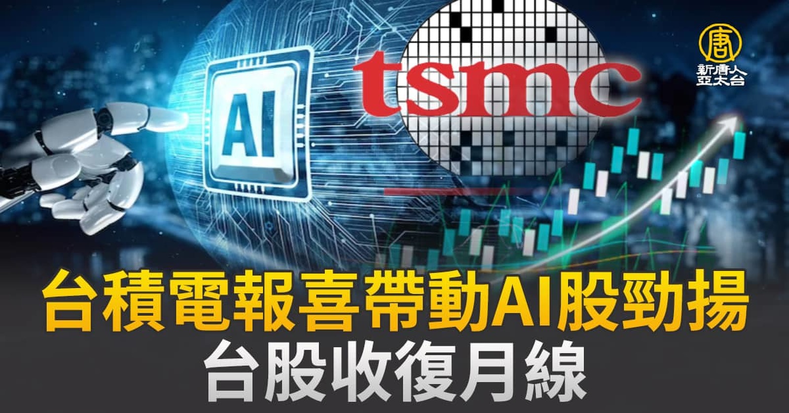 台灣股市今天衝上1萬7600點,收復月線、季線,主要原因,台積電釋出產業正面訊號,今天收盤價上漲38元新台幣,一口氣寫下六大驚奇,包括ADR狂漲9.8%、市值一舉站上16.2兆新台幣、成交量創下近期單日新高,貢獻大盤指數超過300點,也帶動AI股勁揚。 //asset3.ntdtv.com.tw/public/uploads/assets/2024/01/19/2024-01-19-65aa58a923058.mp4 台股|加權指數|金融市場|台積電2024-01-19 19:06:02