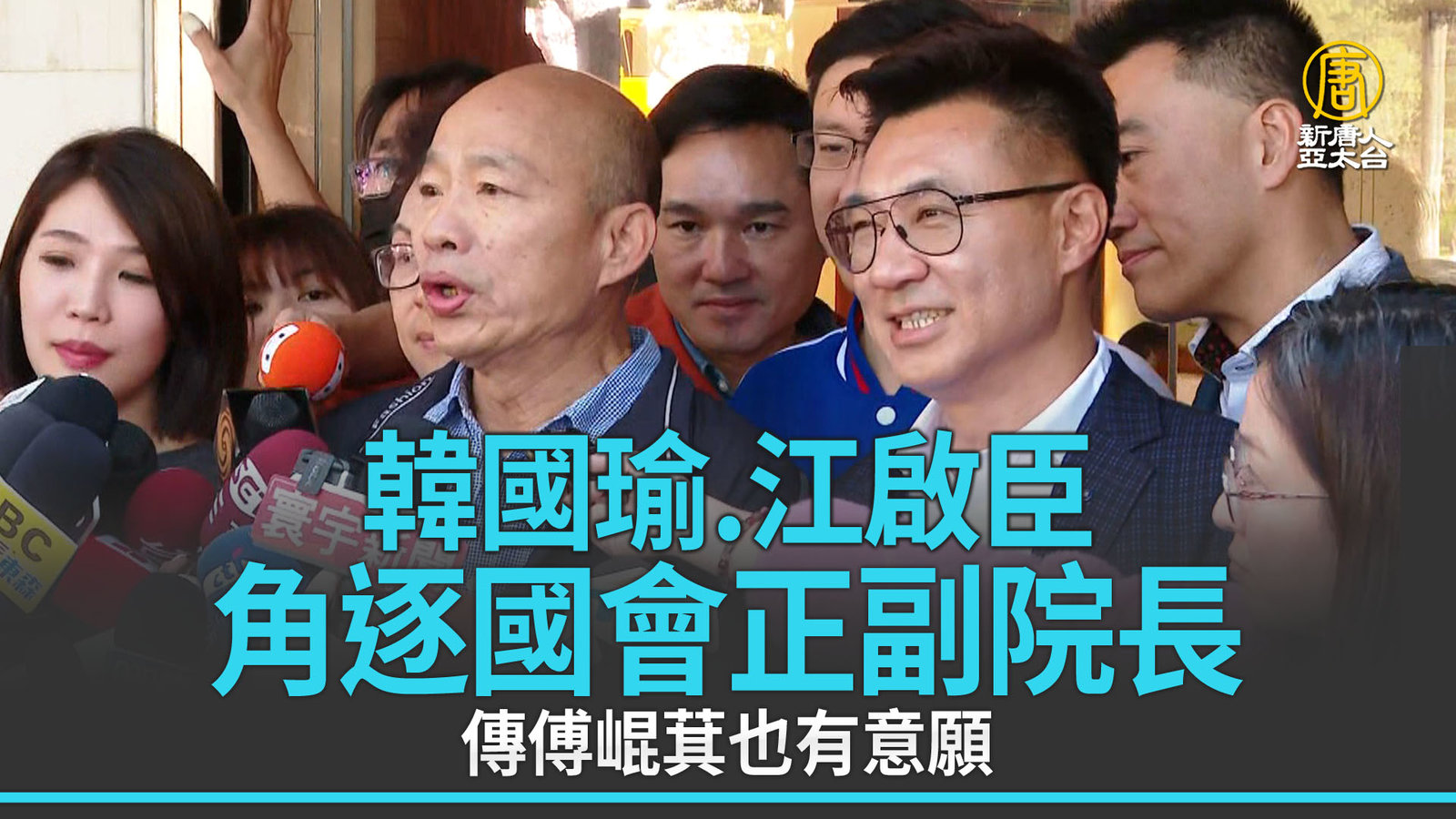 立法院2月份新會期,將改選正、副院長。國民黨席次最多,韓國瑜表態與江啟臣搭檔爭取。韓國瑜今天(19日)宴請國民黨立委當選人尋求支持。傳出傅崐萁也有意角逐,韓國瑜則說會與江啟臣「雙進雙出」。另方面,執政的民進黨團,傳出推舉現任正副院長游錫堃、蔡其昌連任;在三黨不過半格局下,游錫堃受訪時談到,由小黨出任議長,是民主政治的常態,衍生想像空間。 //asset3.ntdtv.com.tw/public/uploads/assets/2024/01/19/2024-01-19-65aa5ab8b04eb.mp4 國會龍頭|立法院長|韓國瑜|江啟臣|傅崐萁2024-01-19 20:04:01