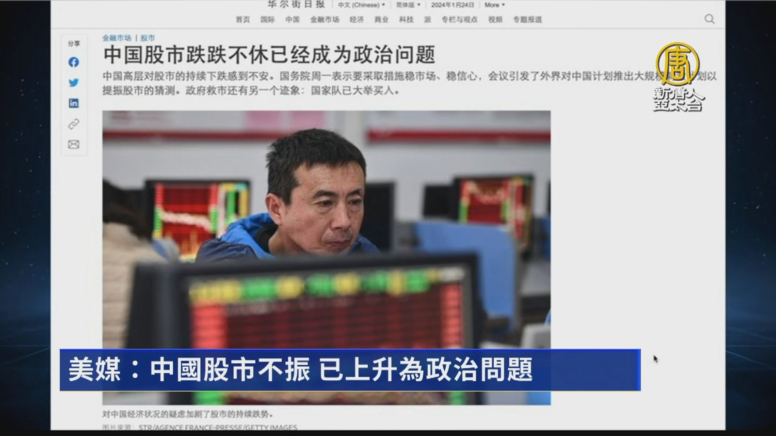 美媒:中國股市不振 已上升為政治問題