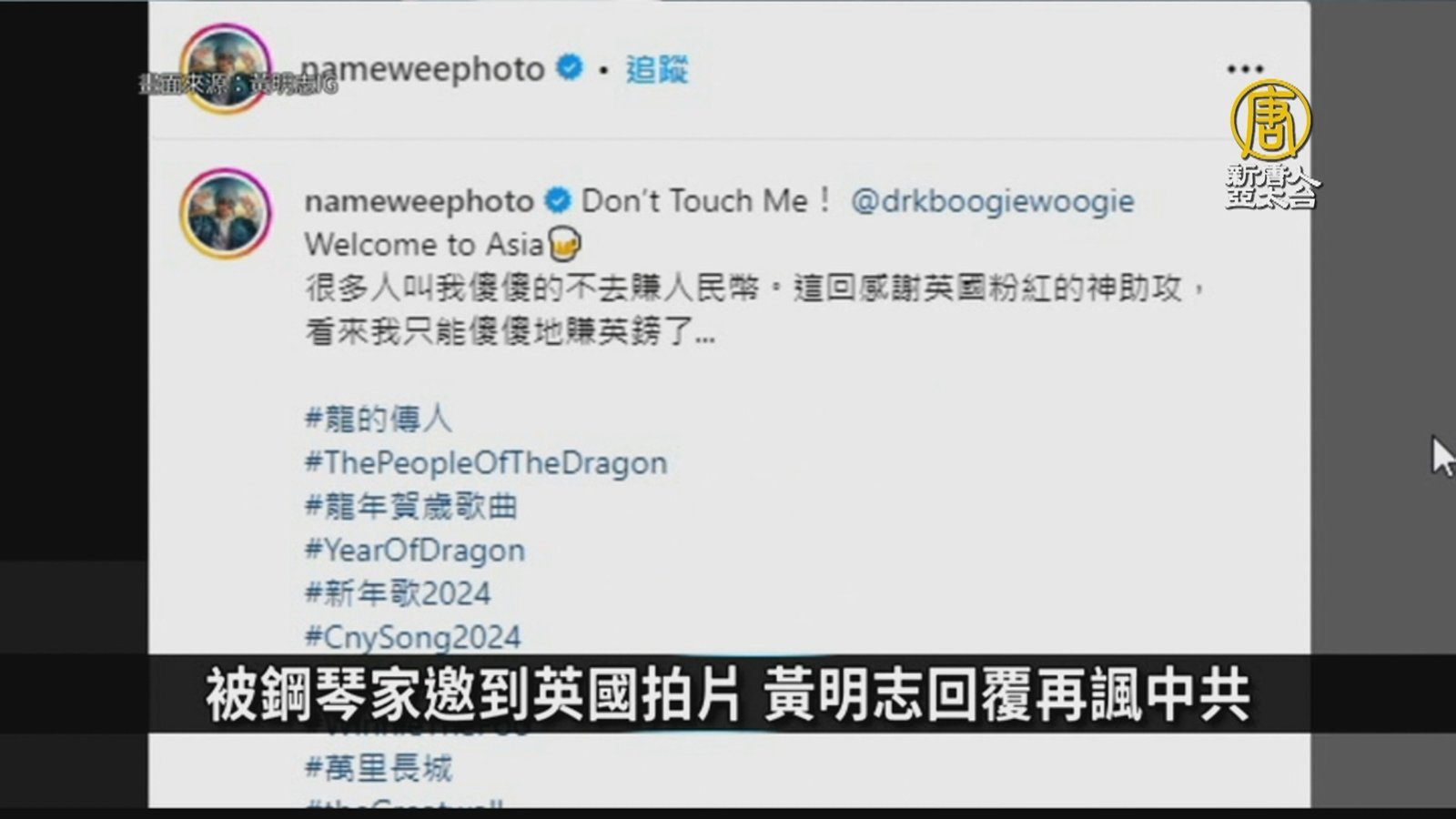 英鋼琴家邀拍片組「辱共連線」?黃明志回覆再諷中共|寰宇掃描