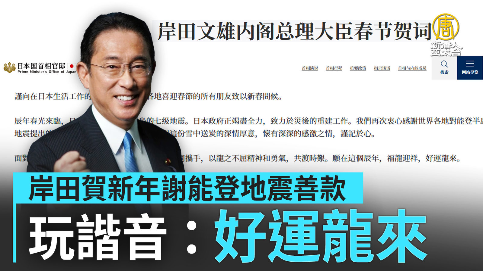 岸田賀新年謝能登地震善款 玩諧音:好運龍來