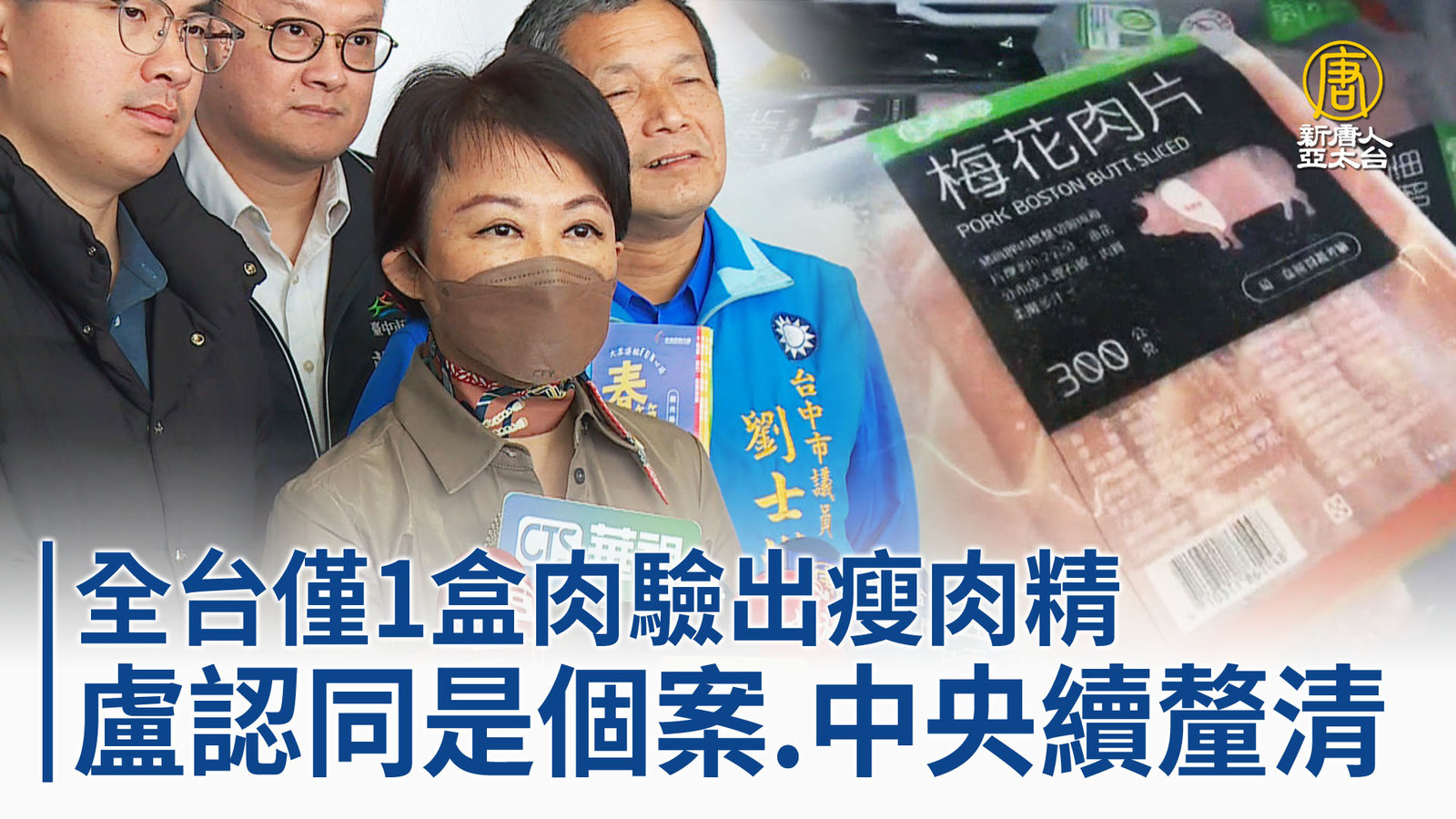 另一個焦點話題,來看到,台中市府日前驗出一盒台糖梅花豬含瘦肉精,經過連日來的追查,確定只有台中市府這一盒樣本有驗出,其餘豬肉供應鏈上下游都沒有檢出。對此,盧秀燕今天(8日)回應相關議題時態度軟化,表示認同這是單一個案。行政院也針對國內豬肉供應鏈加強監測,要讓民眾安心過年。 //asset3.ntdtv.com.tw/public/uploads/assets/2024/02/08/2024-02-08-65c4b974aa432.mp4 王美花|行政院|王必勝|單一事件|瘦肉精|台中市政府|盧秀燕|台中|桃園2024-02-08 21:39:51