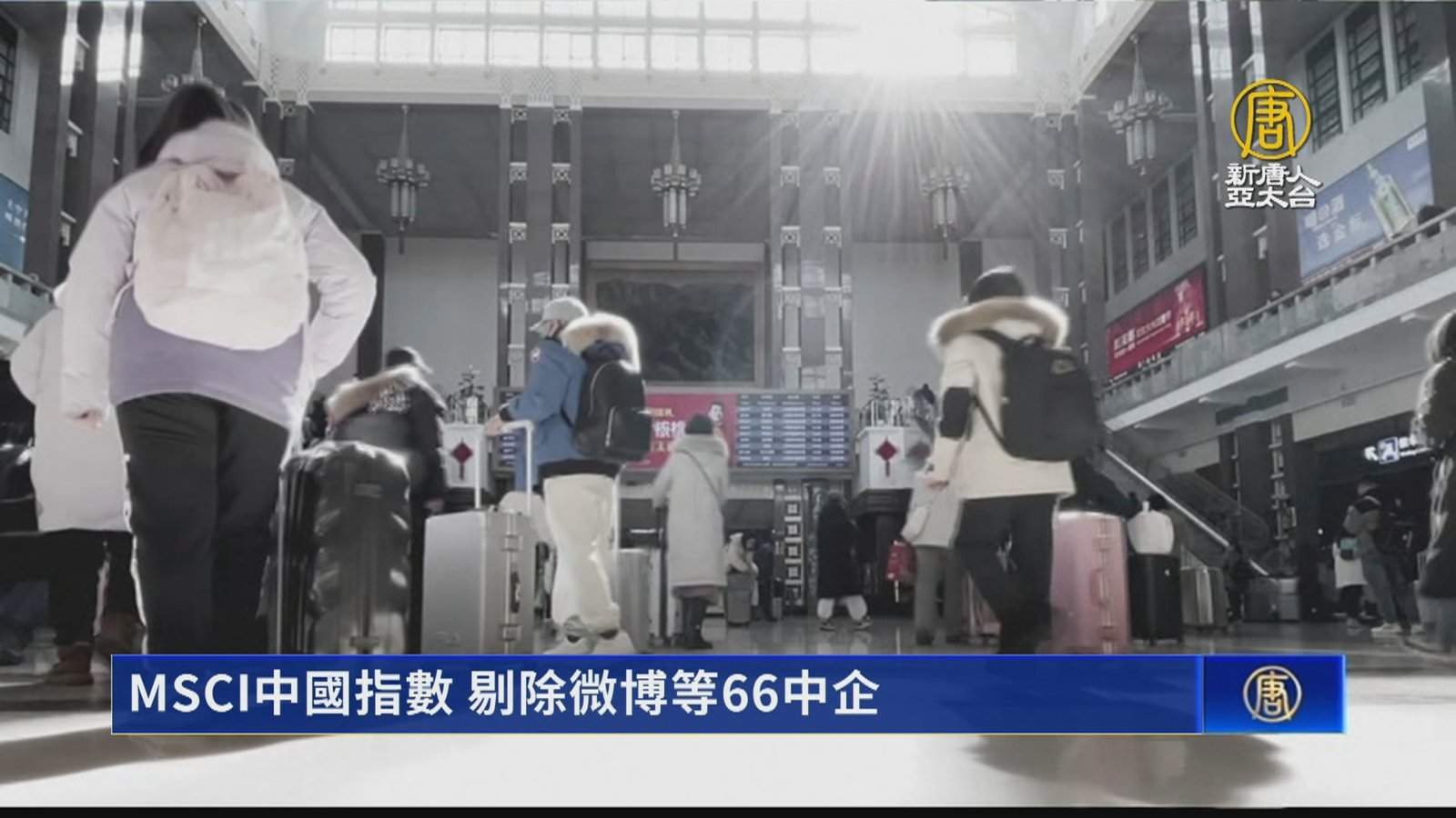 中國經濟低迷、股市接連暴跌,國際指數編纂公司MSCI,宣布刪除66家中國公司,2月底生效,領域涵蓋中國房地產、製藥、航空等行業,微博也包含在內。外媒引述專家認為,這反映投資人的擔憂,因此減少對中國市場的曝險。 //asset2.ntdtv.com.tw/public/uploads/assets/2024/02/14/2024-02-14-65cca3b626aea.mp4 MSCI|中國股市|A股|港股2024-02-14 20:17:14