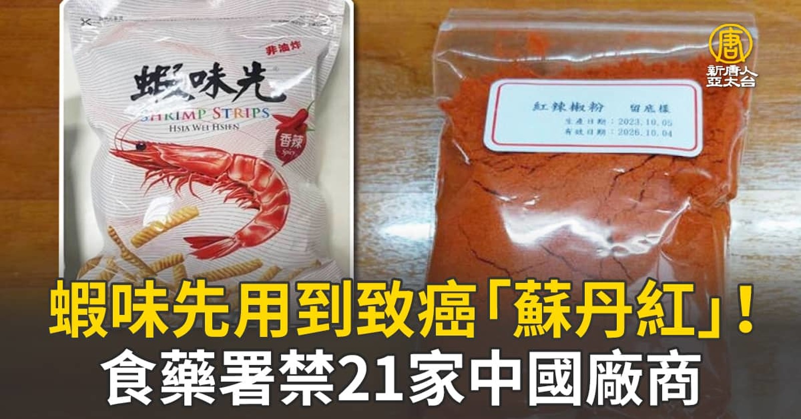 從中國大陸輸入台灣的辣椒粉,被查出添加具致癌風險的工業色素「蘇丹紅」。台灣食藥署已禁止中國大陸21家違規廠商輸入,並對進口輸入的辣椒粉進行100%查驗。點心蝦味先,使用到該原料,廠商裕榮食品今天(21日)發布4點聲明,對原料供應商的疏失,向大眾道歉,出廠的36萬多包「香辣味蝦味先」,高雄已回收9萬多包。 //asset1.ntdtv.com.tw/public/uploads/assets/2024/02/21/2024-02-21-65d5dcd508f81.mp4 蘇丹紅|色素|致癌|食藥署2024-02-21 21:08:36