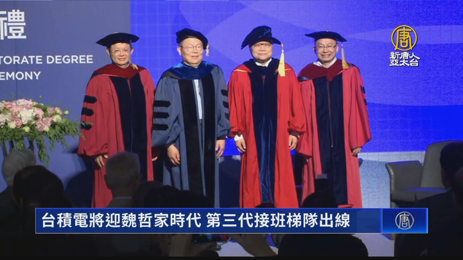 台積電營運備受矚目,總裁魏哲家今天(29日)下午獲頒陽明交大榮譽博士,一大焦點就在組織大幅調整,台積電臨時董事會,任命米玉傑及秦永沛兩人為共同營運長,也象徵第三代台積電接班團隊成立。 //asset3.ntdtv.com.tw/public/uploads/assets/2024/02/29/2024-02-29-65e073c1a8c81.mp4 台積電|魏哲家|半導體|張忠謀|接班|第三代接班2024-02-29 20:08:34