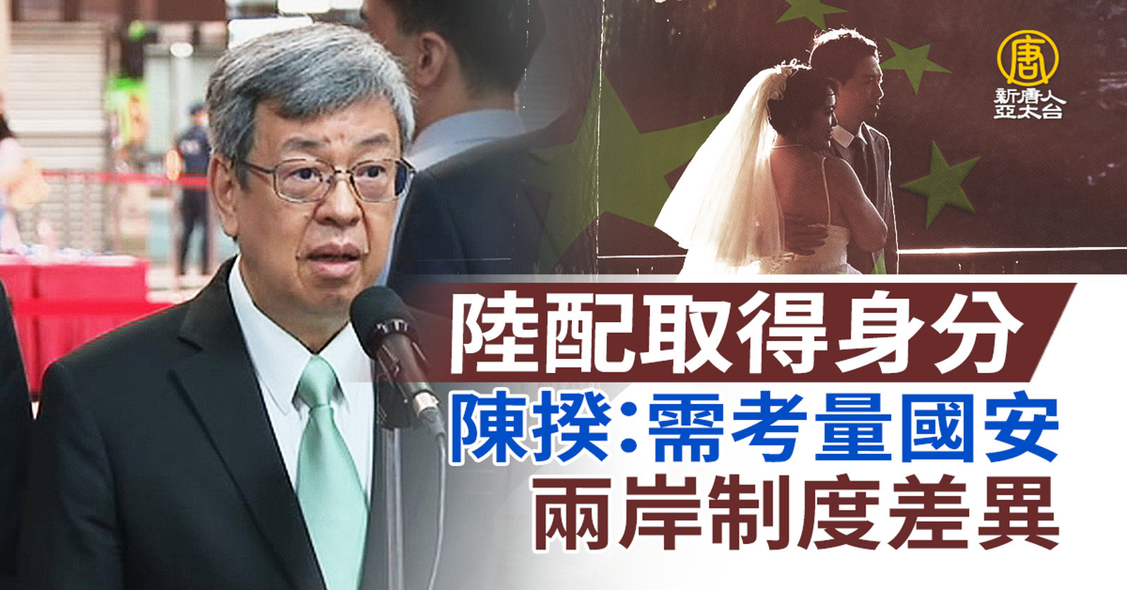 國民黨立委主張縮短大陸籍配偶取得身分證的年限,朝野持續攻防。今天(1日),國民黨立委表示,陸配、外配都是新住民,取得身分證條件應該一致。民進黨立委重申,外配實際的年限長、還要放棄原國籍,陸配享有的福利待遇也比外配優厚,在中共企圖改變台海現狀時,若推動這項法案,是與民意站在對立面。行政院長陳建仁表示,政府目前沒有修法規劃。 //asset3.ntdtv.com.tw/public/uploads/assets/2024/03/01/2024-03-01-65e1b9b5d1a70.mp4 陸配|外配|身分證|權益|立法院|國民黨|民眾黨|陳建仁|行政院2024-03-01 21:18:51
