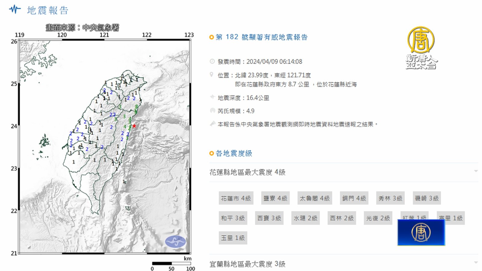 花蓮強震後第7天,仍有6人失聯。包含中和礦場1人,砂卡礑步道5人。特搜隊預計將砂卡礑步道0.5公里處,鎖定為搜索熱區,尋找失聯的新加坡夫妻。此外,5日在砂卡礑步道尋獲的疑似游家父女2具遺體,遭巨石壓住仍無法脫困,重機具持續挺進,盼今(9日)明兩天能順利救出。而4日從台8線175K九曲洞附近,被救出的晶英酒店17歲黃姓實習生,雙腿遭巨石壓住一天一夜,送醫後裝葉克膜救回,但傷勢過重,家屬透露他已腦死。 //asset2.ntdtv.com.tw/public/uploads/assets/2024/04/09/2024-04-09-6615208704928.mp4 0403花蓮強震|花蓮地震|搜救|地震|砂卡礑2024-04-09 20:10:17