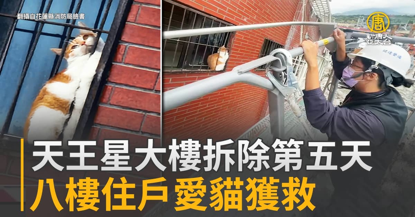 天王星大樓拆除第五天 八樓住戶愛貓獲救