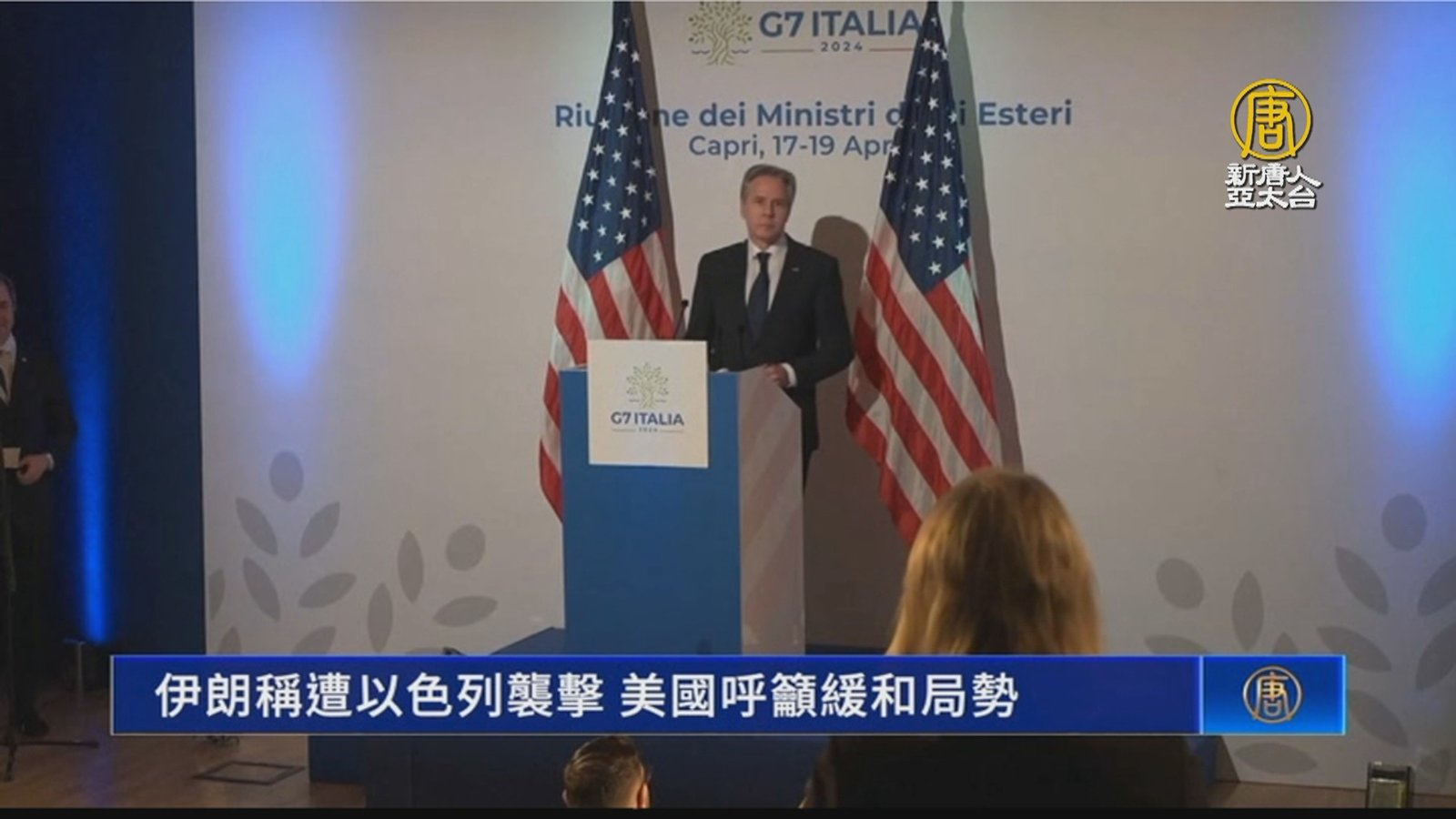 國際訊息來關心,伊朗聲稱,攔截了以色列發動的無人機襲擊,美國國務卿布林肯,在七國集團外長峰會期間,再次呼籲,阻止局勢進一步升級。 //asset2.ntdtv.com.tw/public/uploads/assets/2024/04/20/2024-04-20-6623a2cfebe65.mp4 伊朗|以色列|無人機襲擊|七國集團外長峰會|台海局勢2024-04-20 19:08:40