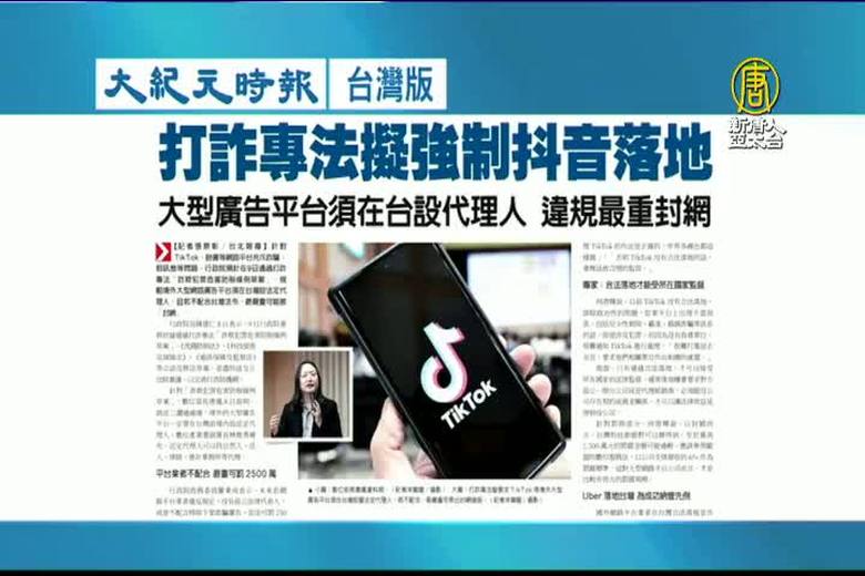 行政院會今天通過「打詐新4法」,打詐專法賦予金融、電信、網路業者防詐責任與義務,要求TikTok等境外大型網路平台,在台灣境內設立法定代理人,違者最重可處2500萬元罰鍰,甚至可以封網。 //asset2.ntdtv.com.tw/public/uploads/assets/2024/05/09/2024-05-09-663caea0440a6.mp4 打詐四法|境外網路業者2024-05-09 19:39:25