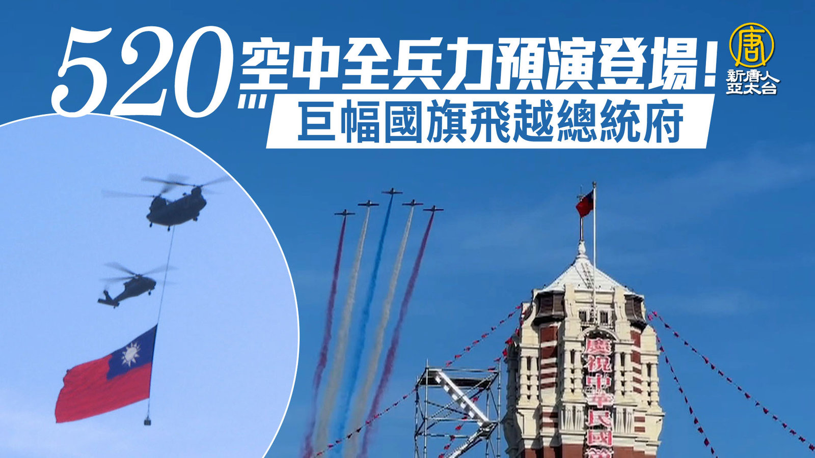 520空中全兵力預演登場!巨幅國旗飛越總統府