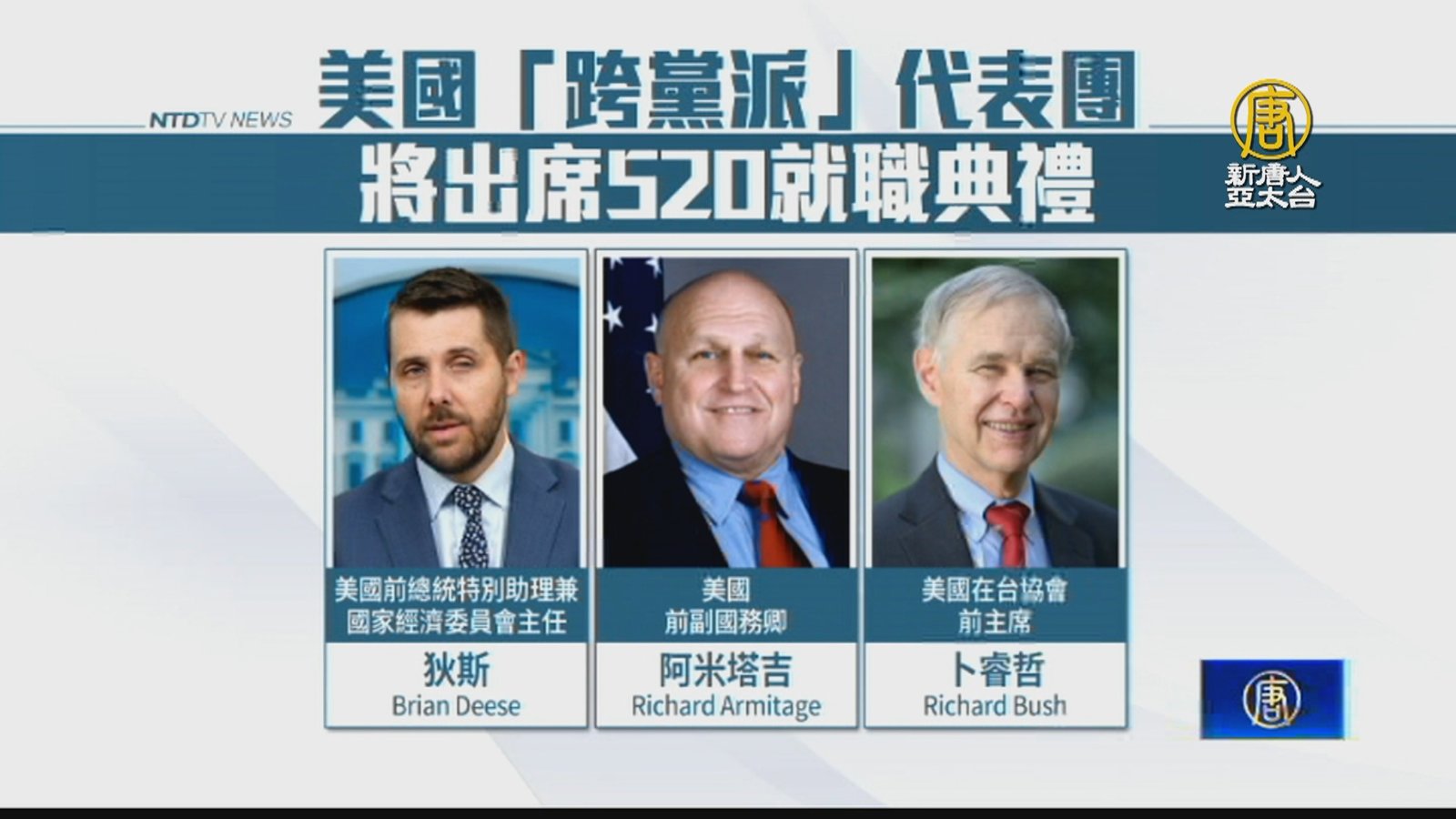 新聞開始先來看到,準總統賴清德就職典禮下個星期一就要登場,美國白宮表示,期盼與新政府合作,並將派出美國晶片法案推手,曾是拜登頭號經濟智囊的狄斯,率領代表團訪台,另外,美國前國務卿蓬佩奧也表示,將出席520就職大典。 //asset3.ntdtv.com.tw/public/uploads/assets/2024/05/16/2024-05-16-6645e8f572328.mp4 賴清德|520就職|5202024-05-16 19:04:29