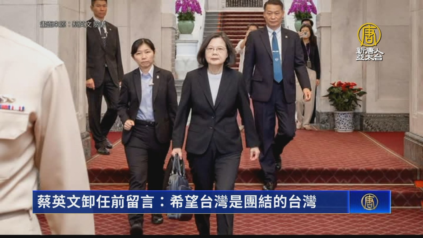 總統蔡英文八年執政,今天終於卸下重任,他在新任總統賴清德陪伴下,離開總統府,副總統蕭美琴道別時還感性拭淚,蔡英文離開前告訴賴蕭,你們兩個加油了。隨後也在臉書發文表示,謝謝台灣人民8年來的相伴與支持,未來會繼續在不同的位置、用不同的角色,為台灣打拚。 //asset2.ntdtv.com.tw/public/uploads/assets/2024/05/20/2024-05-20-664b4011eda34.mp4 賴清德總統就職|賴清德|蕭美琴|520就職典禮|5202024-05-20 20:20:34