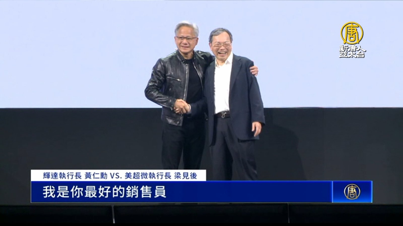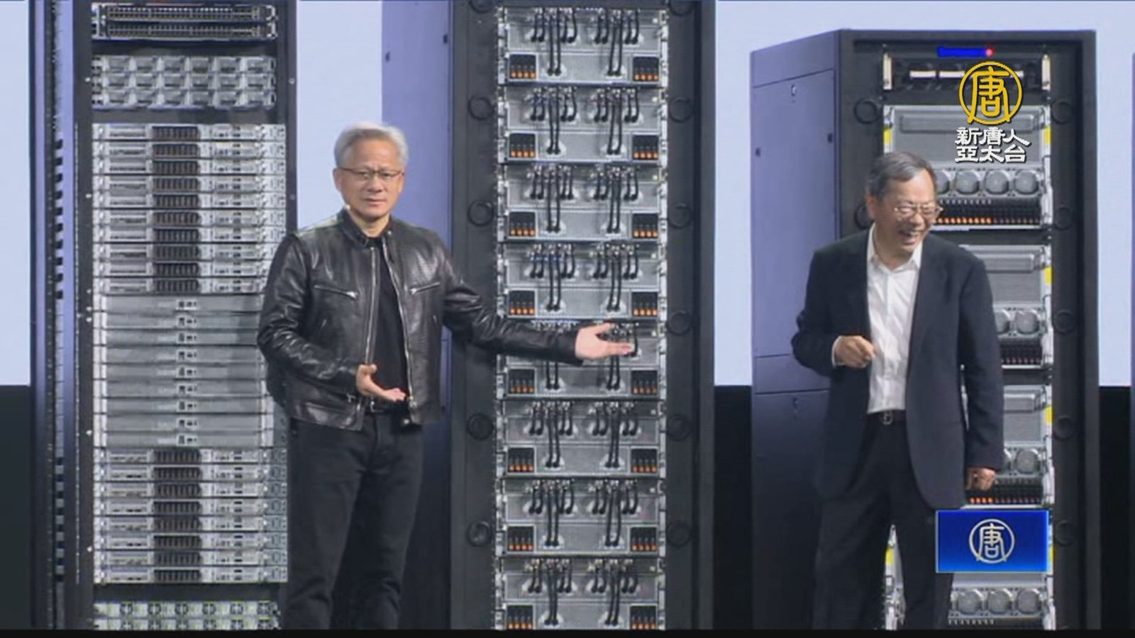 國際科技巨頭,齊聚台北COMPUTEX。美超微執行長梁見後,今天主題演說,介紹旗下最新「綠色運算」液冷機櫃解決方案,邀請輝達執行長黃仁勳站台,顯現兩人好交情。 //asset3.ntdtv.com.tw/public/uploads/assets/2024/06/05/2024-06-05-6660485213b2f.mp4 黃仁勳|美超微|梁見後|液冷2024-06-05 20:09:00