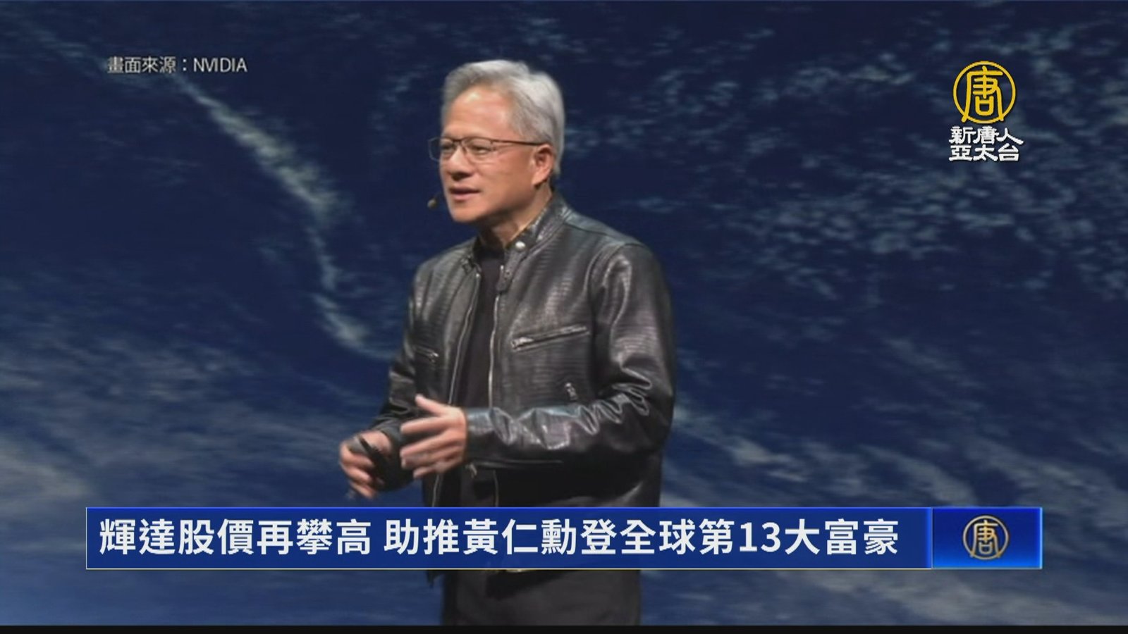 輝達股價再攀高 助推黃仁勳登全球第13大富豪