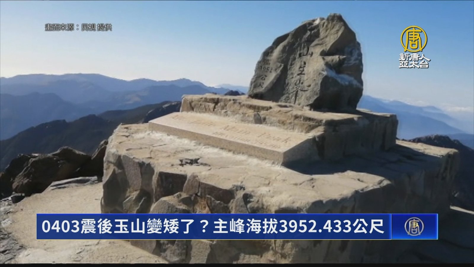 0403花蓮大地震後,台灣第一高峰變矮了嗎?最新測量結果發現,玉山主峰,海拔高度3952.433公尺,比去年11月矮了5.2公分,大約0.052公尺,玉山管理處表示,在誤差範圍內,大家不用擔心;但連日雨勢,玉山主峰路線,離登山口4.9公里處,發生坍方,暫時關閉。 //asset1.ntdtv.com.tw/public/uploads/assets/2024/06/05/2024-06-05-66604bc0f1802.mp4 玉山主峰|玉山|玉管處|地震|花蓮強震|403大地震2024-06-05 19:24:36