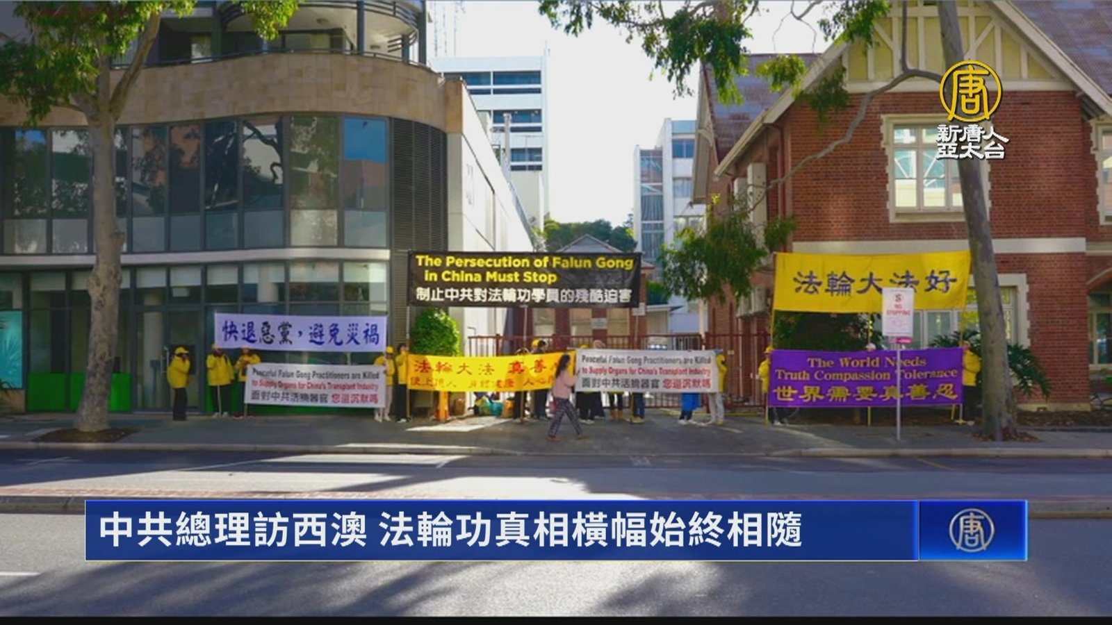中共總理訪西澳 法輪功真相橫幅始終相隨