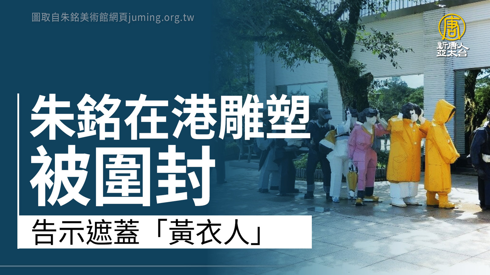 朱銘在港雕塑被圍封 告示遮蓋「黃雨衣人」