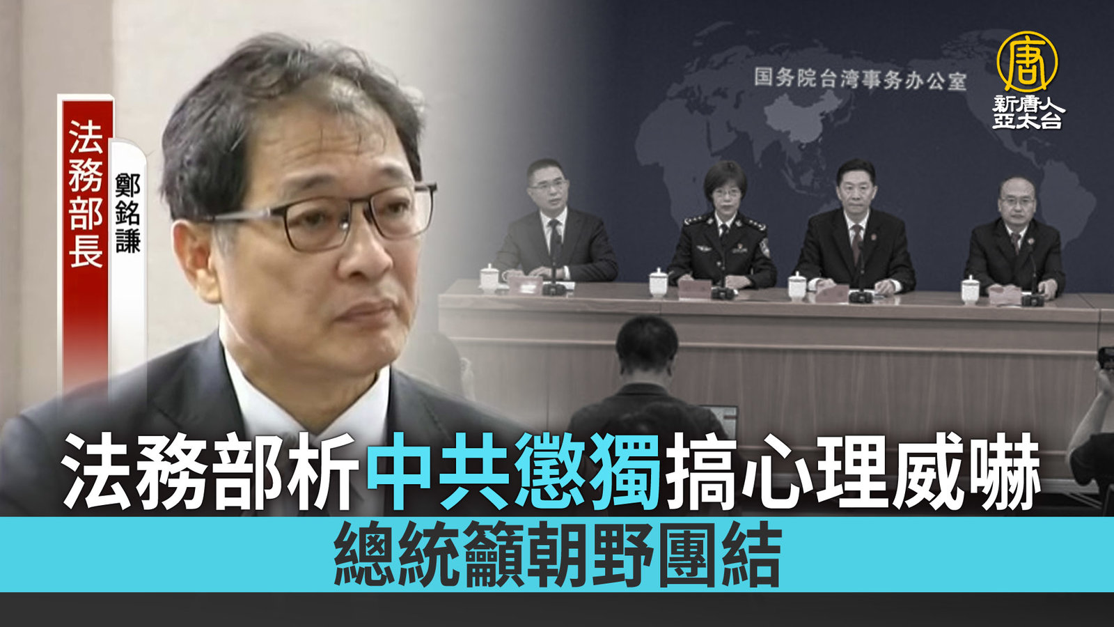 法務部析中共懲獨搞心理威嚇 總統籲朝野團結