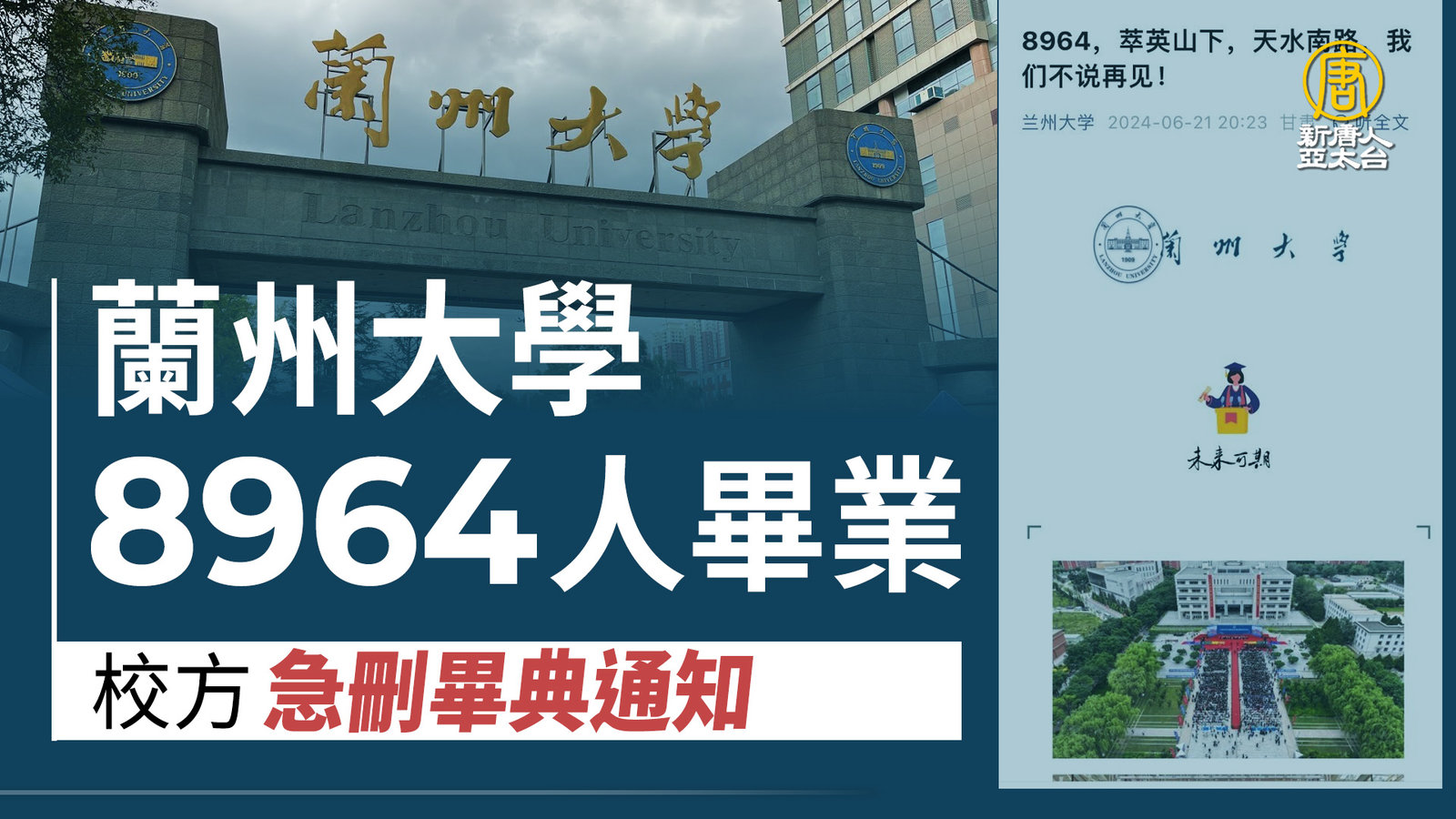 蘭州大學「8964」人畢業 校方急刪畢典通知|中國一分鐘