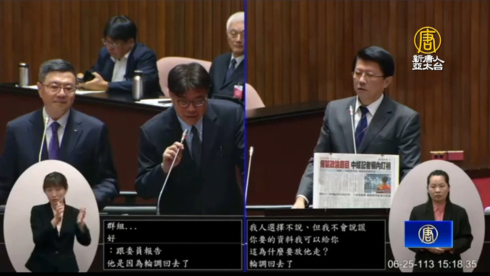 政治焦點,國會職權修法爭議,有四方決定向憲法法庭聲請釋憲。監察院今天(25日)說明理由,指出立法院修法擴張調查權,嚴重妨害監察院職權,違反權力分立原則。國會職權修法本週三生效,藍白兩黨擬在釋憲前的空窗期展開動作。行政院長卓榮泰喊話,在大法官解釋前,各憲政機關不應該有太多動作。 //asset3.ntdtv.com.tw/public/uploads/assets/2024/06/25/2024-06-25-667aa5c337939.mp4 國會|釋憲|國會改革|國會擴權|監察院2024-06-25 19:52:59