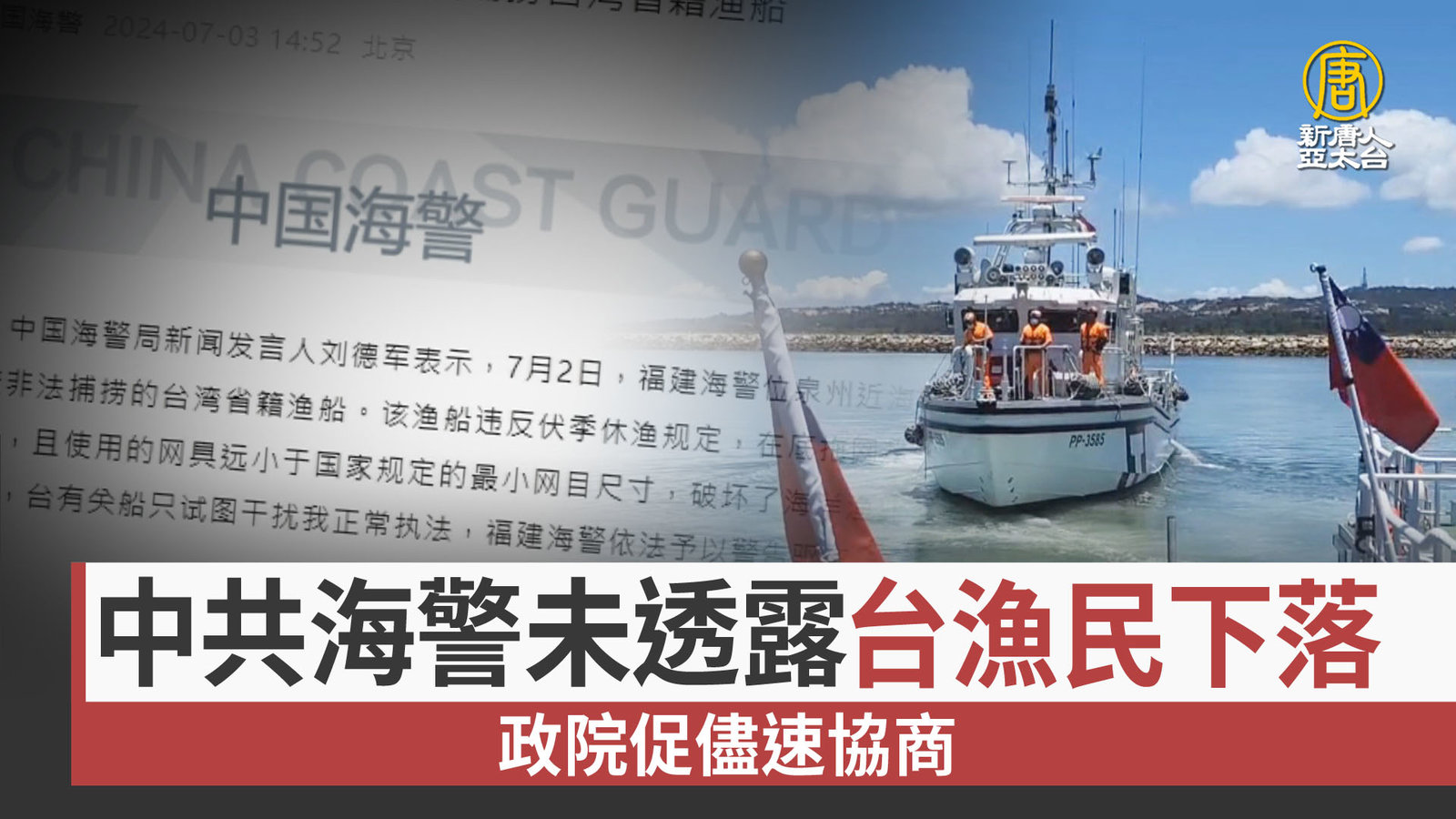 中共海警未透露台漁民下落 政院促儘速協商