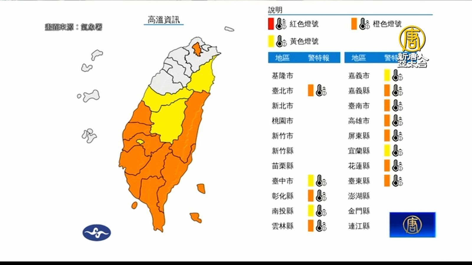 台灣各地高溫炎熱,根據氣象署資料,今天全台最高溫出現在高雄旗津,飆升至39.9度,台北社子38.4度,位居第二。氣象署也針對週六13縣市發佈高溫警示,提醒有連續出現36度以上高溫的機率。另外,氣象署統計:今年6月是1950年以來同期第4暖,全台11個平地站平均氣溫,較以往平均值高出0.7度、雨量卻只有往年的6成。導致今年6月特別炎熱。根據衛福部統計,7月才過了5天、截至昨天週四就有201人次因熱傷害送醫;醫師提醒:應避免中午到下午3點外出或進行戶外活動,並且要多補充水分。 //asset3.ntdtv.com.tw/public/uploads/assets/2024/07/05/2024-07-05-6687d459e839e.mp4 高溫2024-07-05 19:04:06