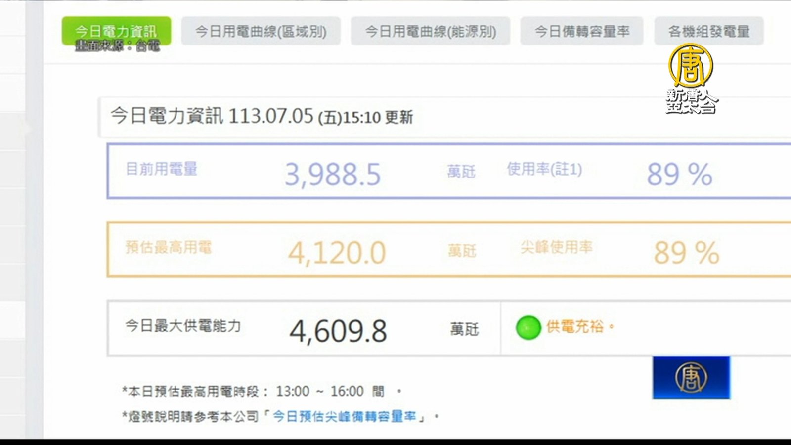 今明最熱!用電量最高4096萬瓩 備轉容量綠燈